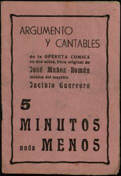5 minutos nada menos : argumento y cantables de la opereta cómica en dos actos