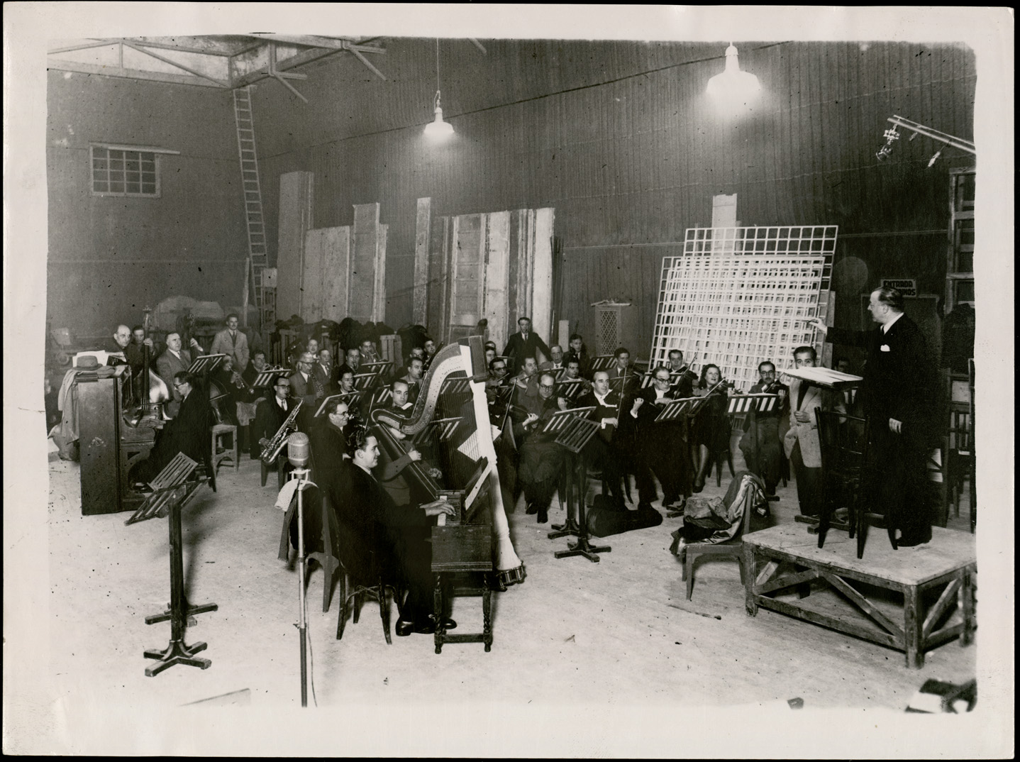 Aparecen, además de Jacinto Guerrero, Joaquín Bisbe, los miembros del cuarteto Orpheus y Sr. Ariola.