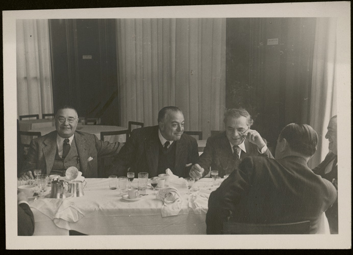 Jacinto Guerrero comiendo con miembros de la Sociedad de Autores