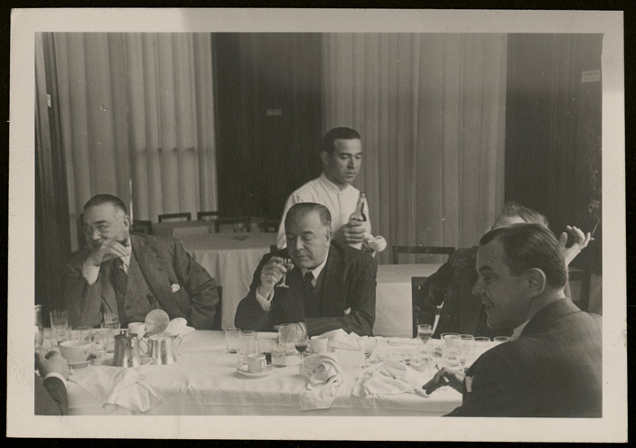 Jacinto Guerrero comiendo con miembros de la Sociedad de Autores