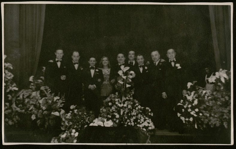 Jacinto Guerrero con un grupo de actores y autores