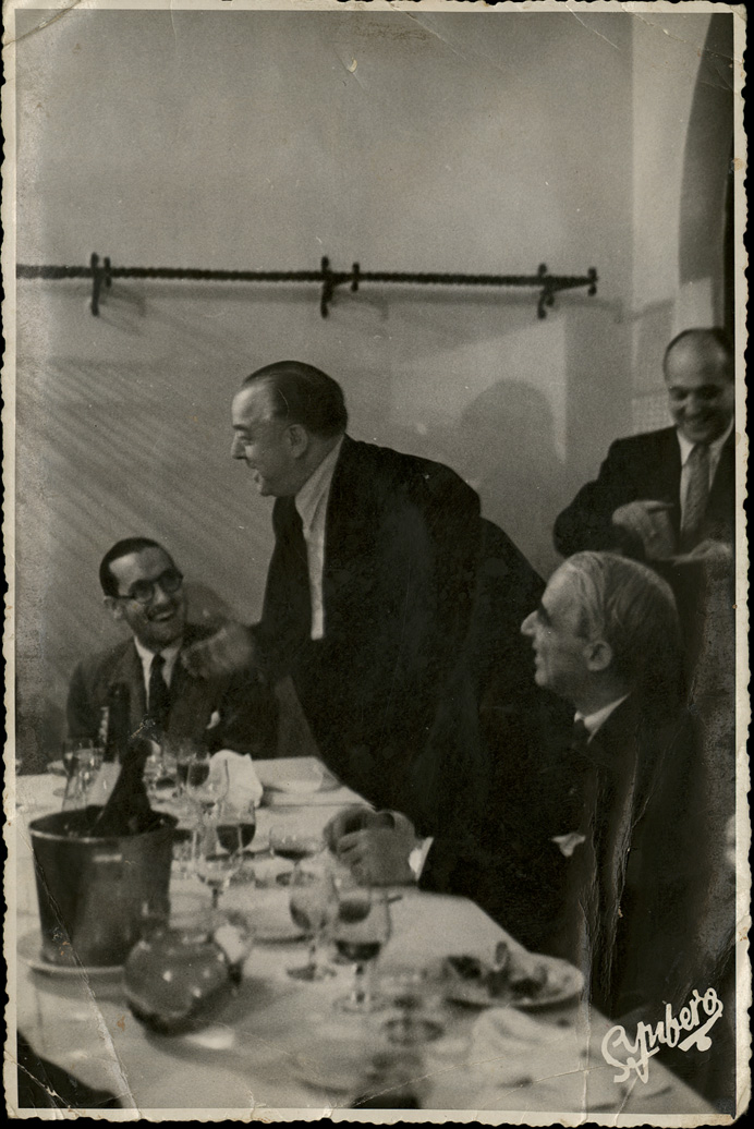 [Jacinto Guerrero en una comida con Juan Rodríguez (empresario del Teatro Martín), Muñoz Román y otros]