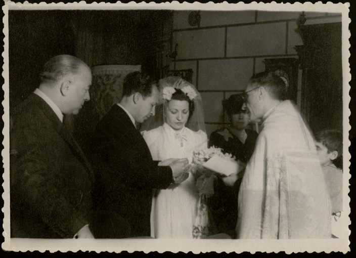 Ver también las signaturas F/45 y F/46 pertenecientes al mismo evento, con fotografías tomadas en el restaurante, y la signatura F/92 con fotografía de estudio de los novios. - En el álbum "Teatro" hay otras dos fotografías del mismo evento, página 70