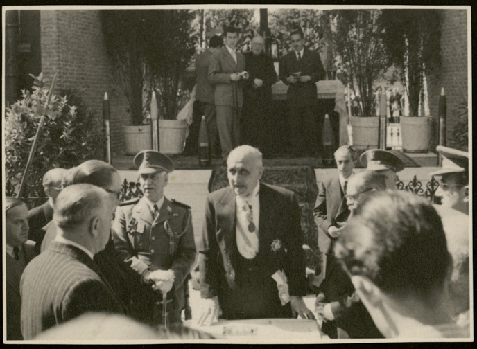 Jacinto Guerrero y Federico Romero recibiendo un premio