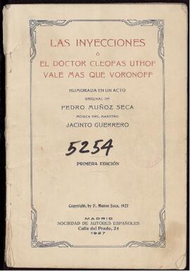 Las inyecciones o El doctor Cleofás Uthof vale más que Voronoff : humorada en un acto