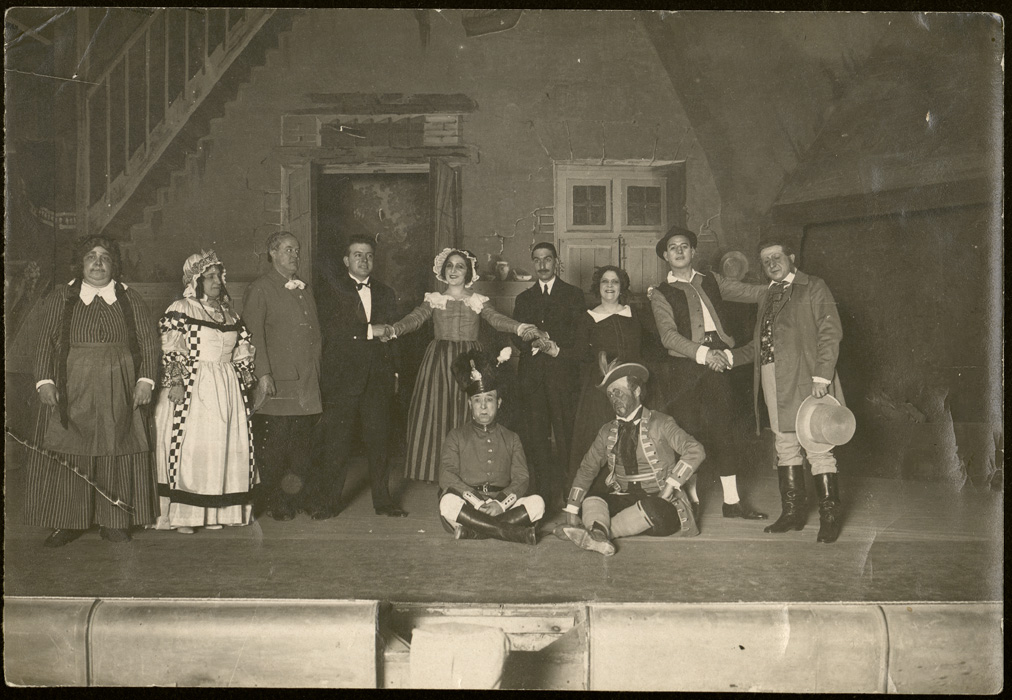 En la fotografía con signatura F/148 aparece Jacinto Guerrero y José Ramos Martín (libretista de la obra) en escena saludando, con los actores Emilia Iglesias, Eugenia Zúffoli, Emilio García Soler y Emilio Vendrell. - La fotografía con signatura F/150 es un fragmento, convertido en tarjeta postal, de la fotografía con signatura F/149 en el que figura Emilio Garcia Soler. En ángulo inferior derecho, anotación manuscrita: "Amigo Ramos Martín, vaya un saludo de Juan con cariño y sin postín. Recuerdo del "Gavilán". 7-12-923". -