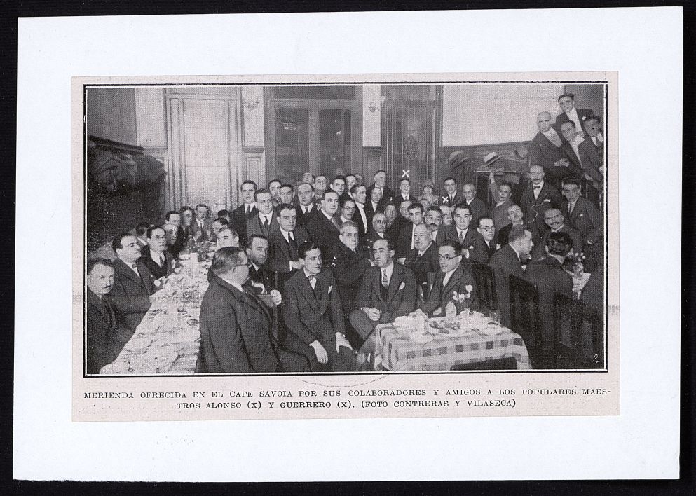 [Merienda en el café Savoia en homenaje a los maestros Alonso y Guerrero]