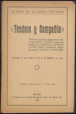 Teodoro y compañía : vodevil en tres actos, original de los señores Gavault y Nancey ; adaptación castellana de Federico Reparaz y José Juan Cadenas ; música del maestro Jaicnto Guerrero