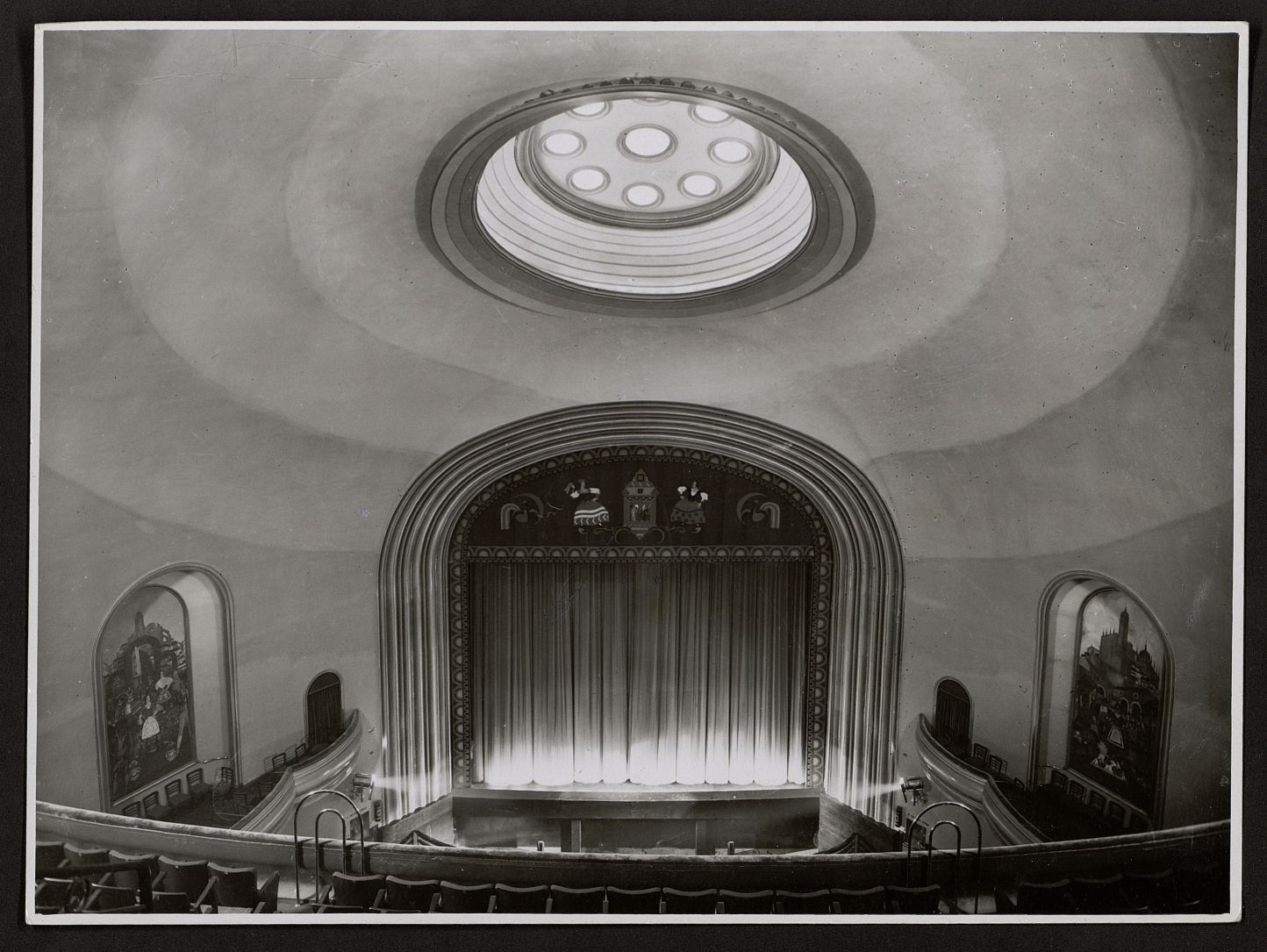 [Vestíbulo, pasillos, bar, sala y escenario del teatro]
