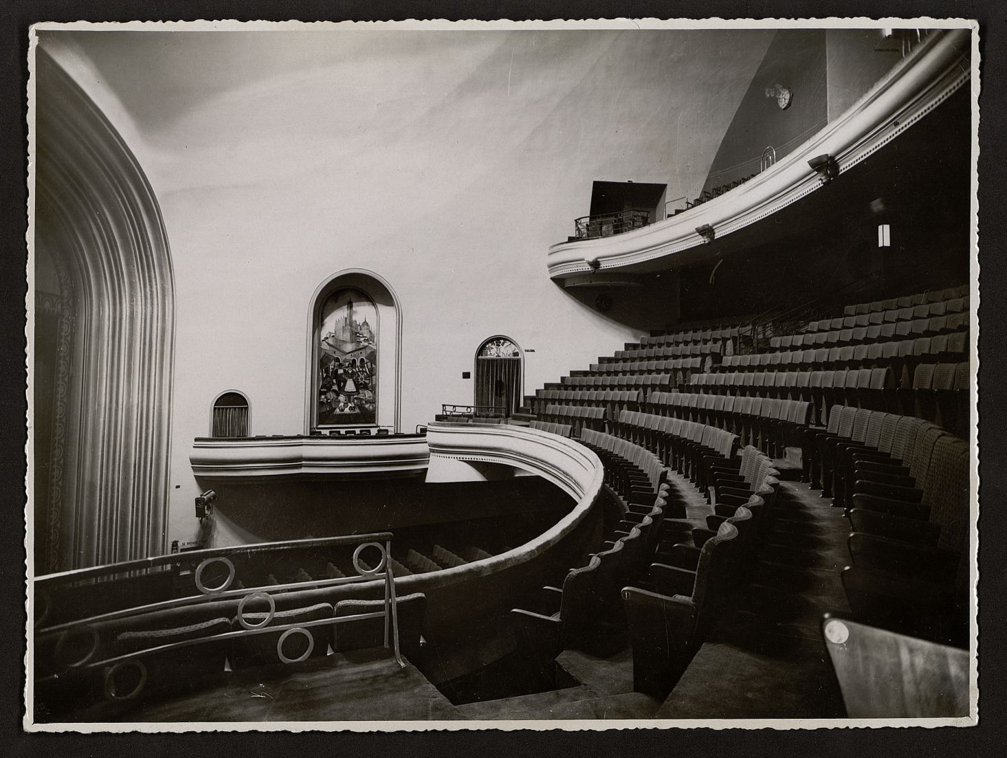 [Vestíbulo, pasillos, bar, sala y escenario del teatro]